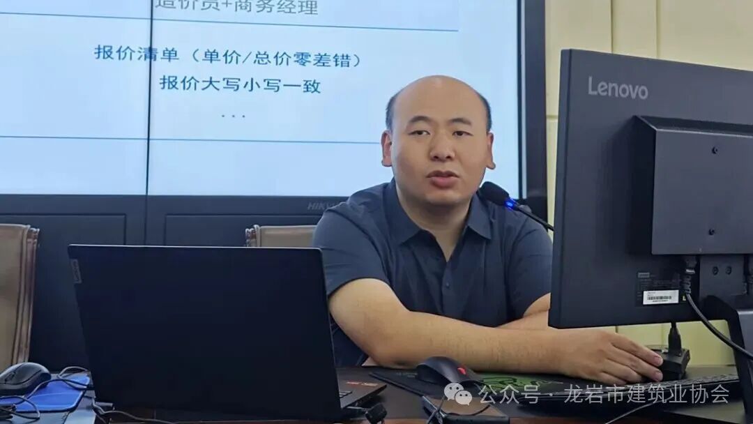 龙岩市建筑业协会秘书长邱燕珍为本次培训会致辞。她在讲话中指出,当前建筑行业正面临多项政策举措的深化改革,行业企业和管理人员必须通过苦练内功、拥抱新技术来提升核心竞争力。她强调,本次培训正是为了帮助大家掌握像AI这样的现代化工具,优化招投标全流程,从而在激烈的市场竞争中把握先机。